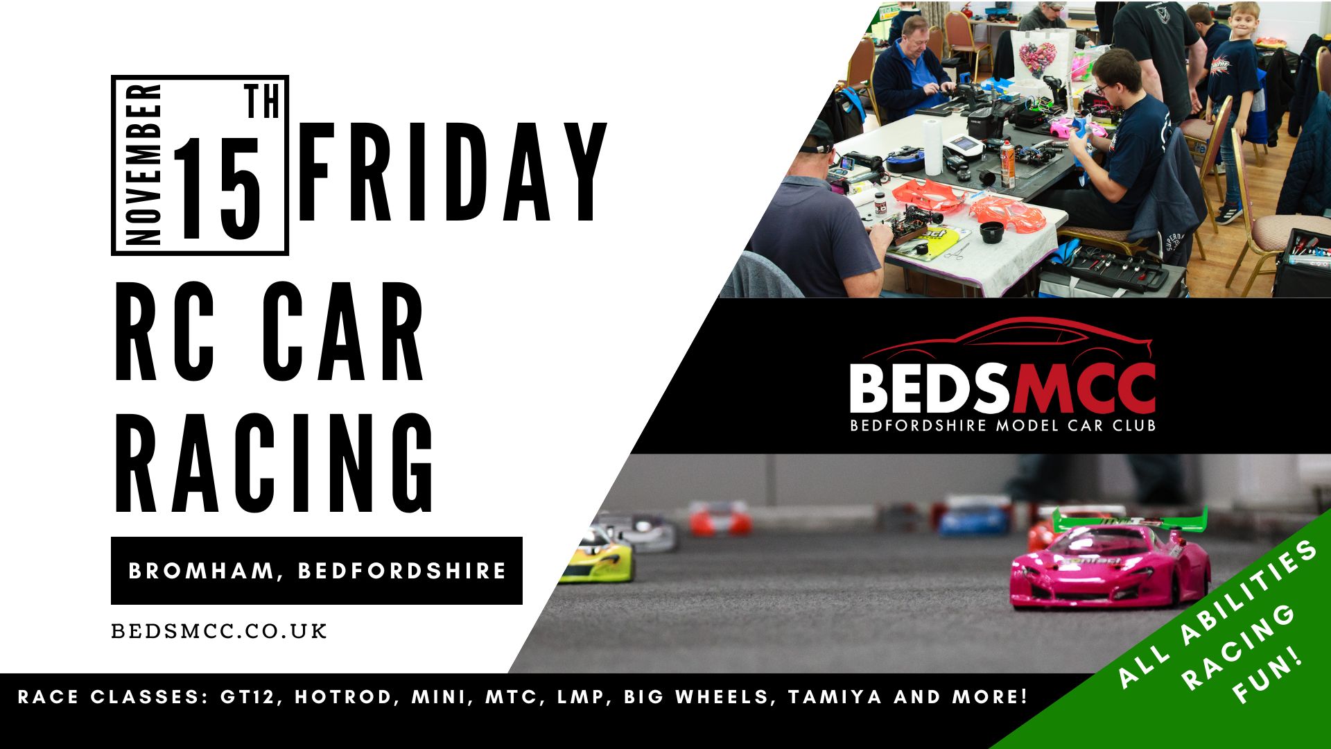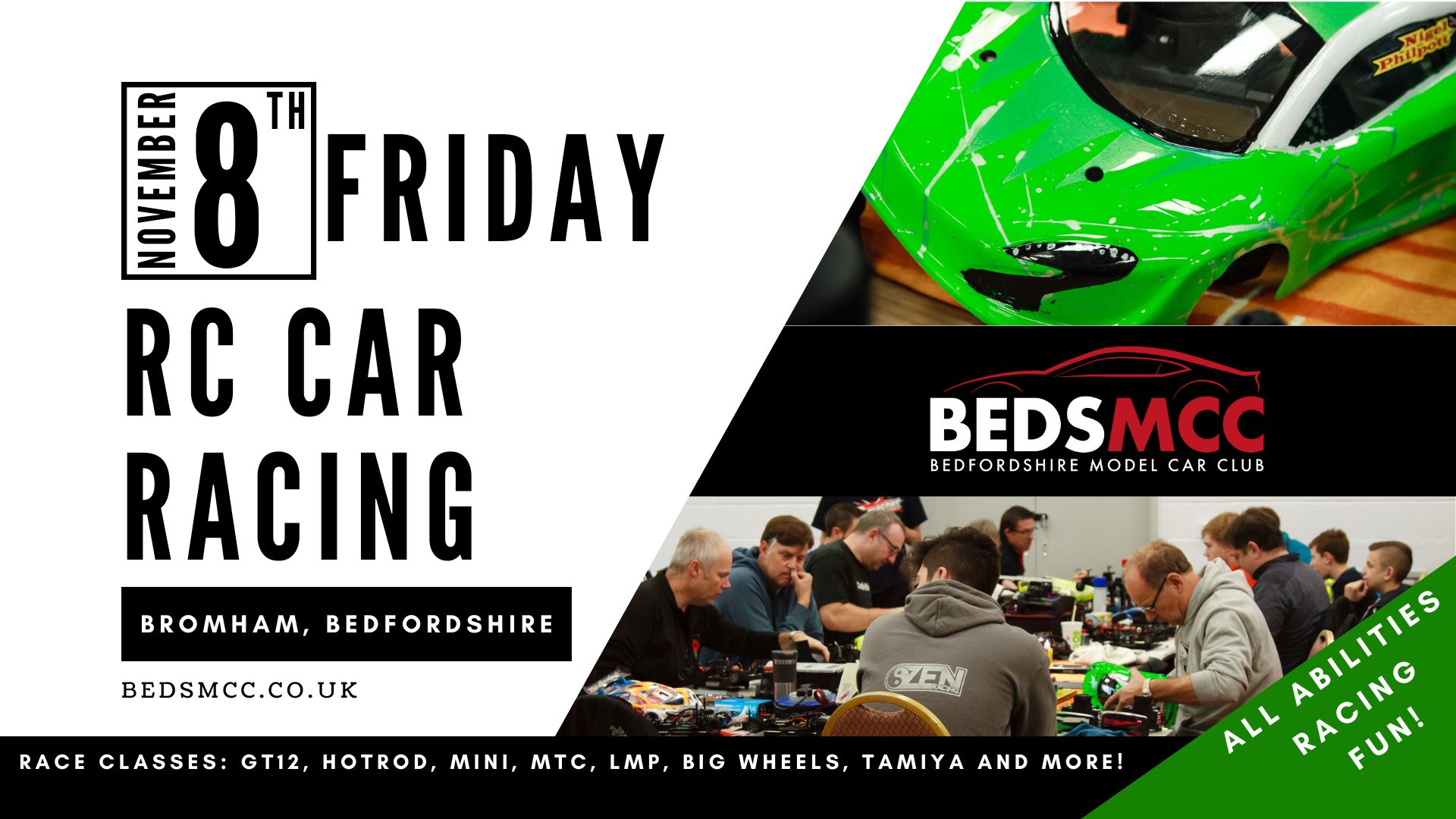 Facebook Event Link BedsMCC caters for RC car racers of all abilities racing ‘on-road’ classes indoors on prima-felt...