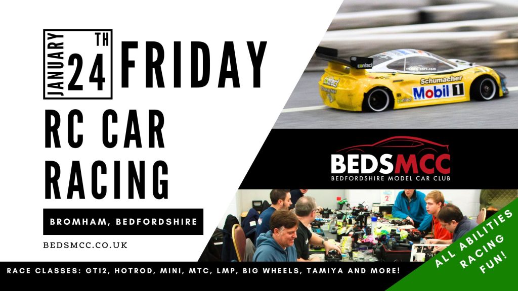 BedsMCC caters for RC car racers of all abilities racing ‘on-road’ classes indoors on prima-felt carpet at the Bromham Village Hall every Friday.